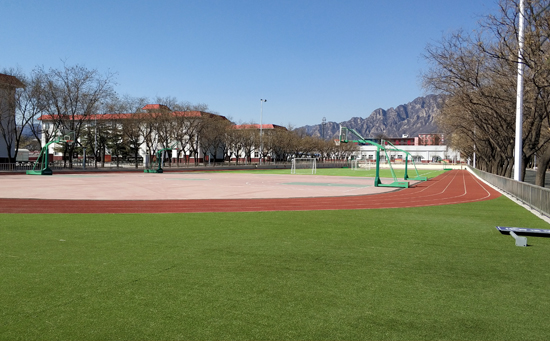 足球場施工某部運動場包括,兩片5人制人造草坪足球場,足球場人造草采用50單絲小加筋草皮,整體綠色協調,有一個良好的體魄加油助力,透氣型顆粒塑膠跑道鋪裝,6條道,4片硅Pu塑膠籃球場,半圓區(qū)人造草絲草,